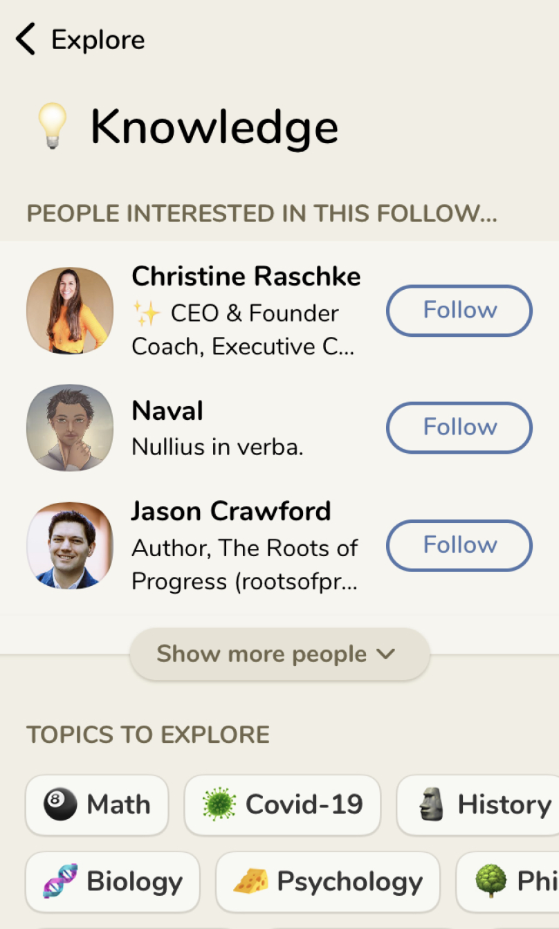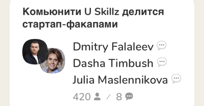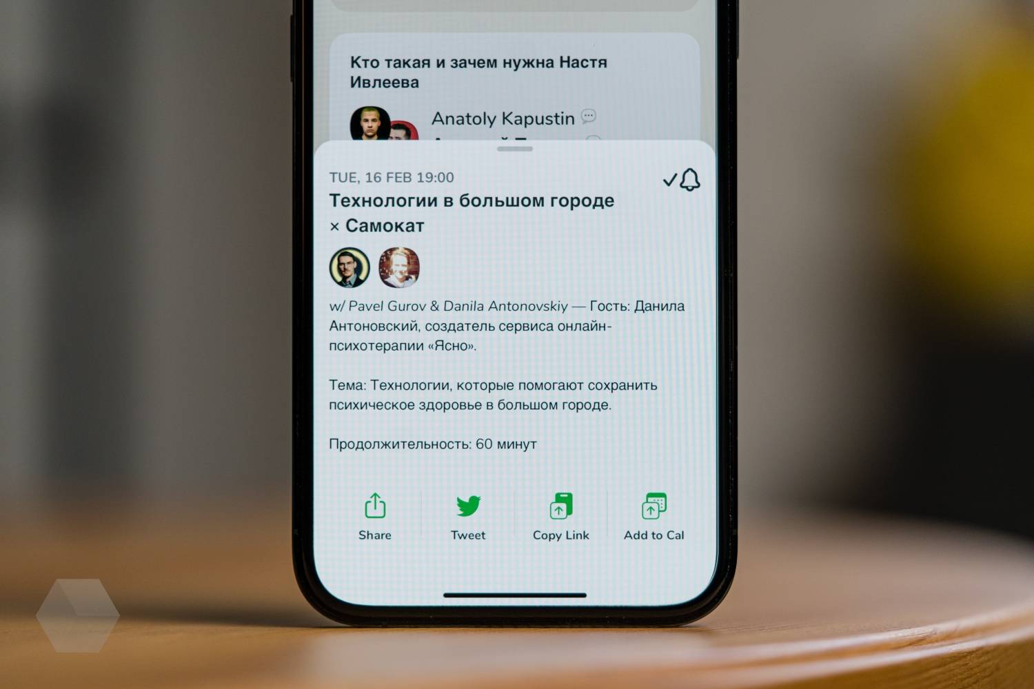 Удобно, что в клабхаусе появляются рекомендации, как и в инстаграме. Соцсеть сама предлагает людей со сходными интересами — можно довольно быстро расширить круг подписок, чтобы в Upcoming Events было что послушать в любое время дня.
