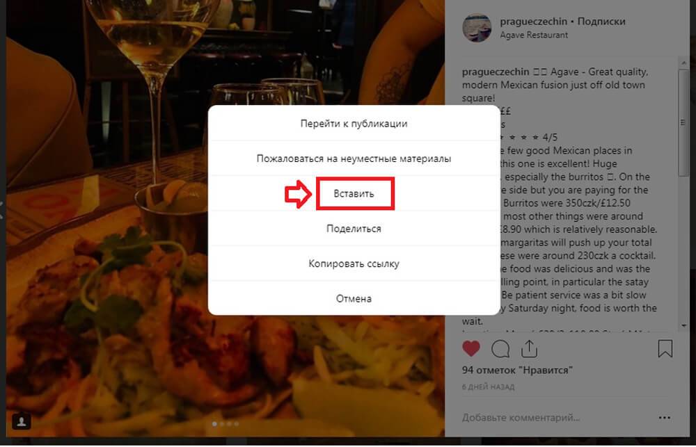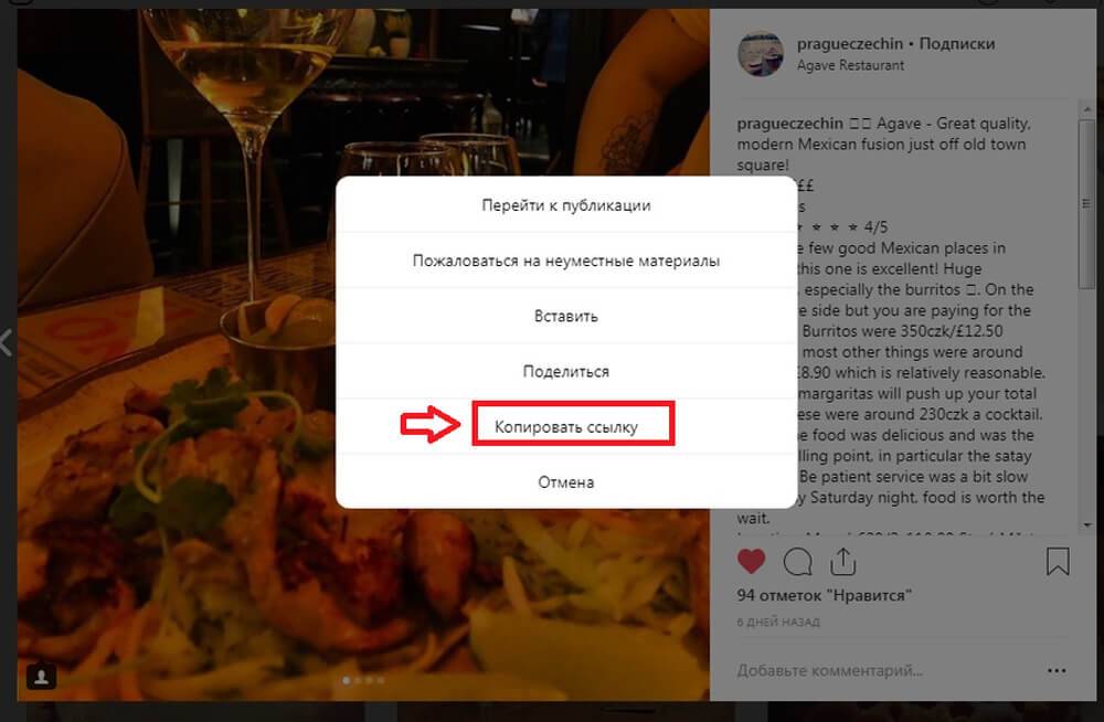 Шаг №1. Вставить URL-ссылку на пост в Инстаграме.