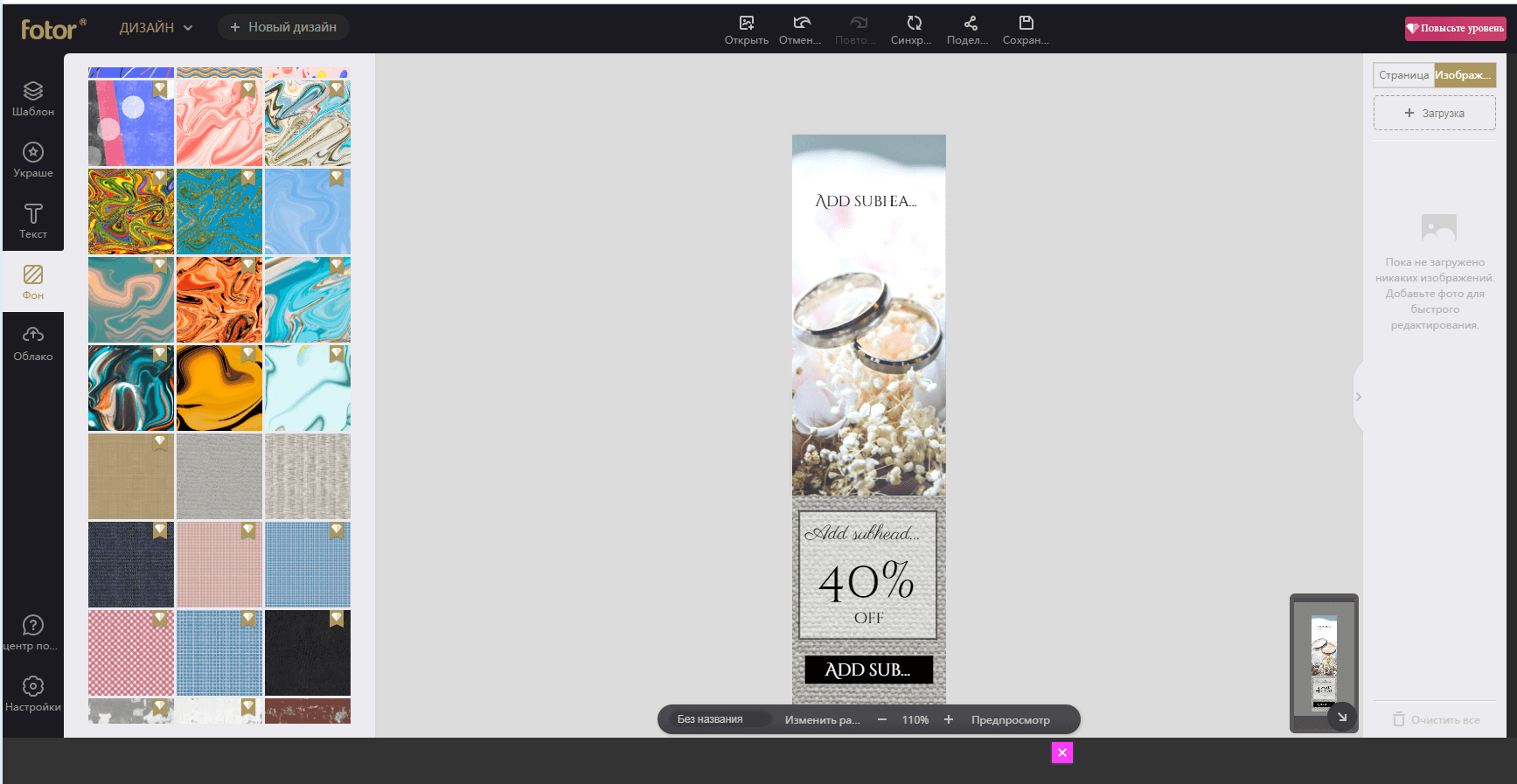 Сервис с необязательной регистрацией Fotor имеет интерфейс на русском языке. В нем можно создавать дизайны, коллаж или редактировать фото. Есть шаблоны для баннерной рекламы, постов для соцсетей и др.