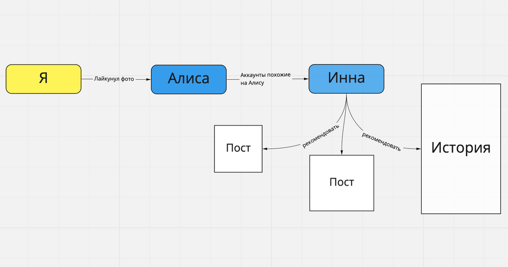 Нейросеть подсчитывает контакты между пользователями: комментарии, лайки, отметки на фото и переписки в Direct. Я провела эксперимент: из моей ленты через какое-то время пропали пользователи, которых я намеренно игнорировала. Еще через некоторое время их посты появились в количестве одного-двух (алгоритм проверяет, не заинтересует ли контент).