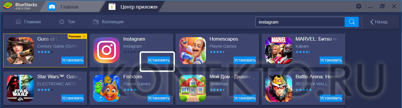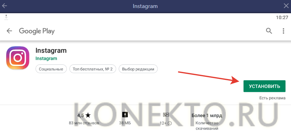 - Аналогичным с мобильным устройством способом скачайте Instagram из магазина приложений Google.