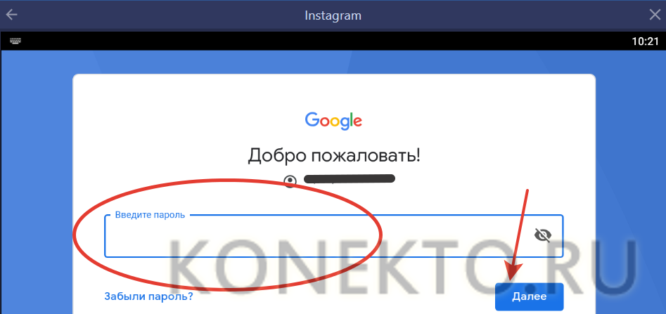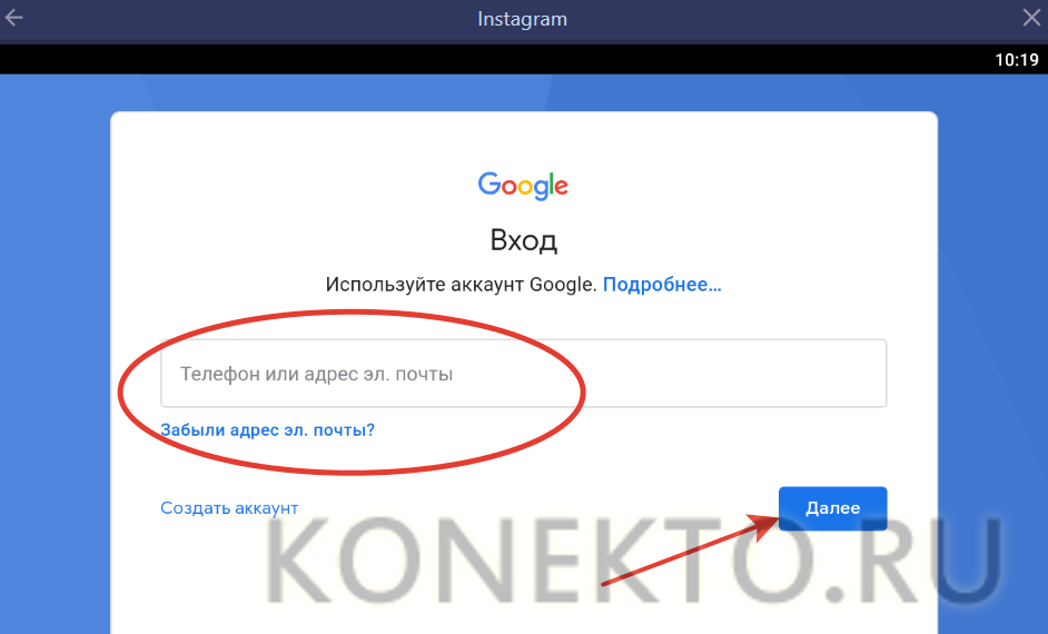 Указываем номер телефона или адрес почты Gmail и нажимаем «Далее».