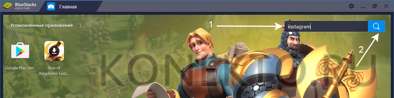 После стандартной процедуры установки открываем программу, в поисковую строку вводим слово Instagram.