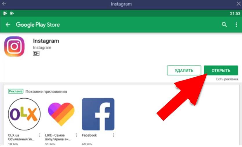 - Установите, а затем откройте приложение Инстаграм. Программа BlueStacks переключится в режим мобильного устройства.