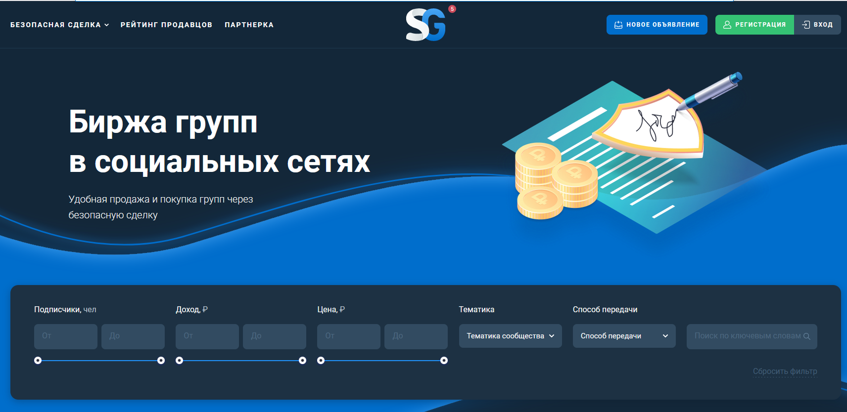 salegroups.ru. Искать аккаунт можно по количеству подписчиков, доходу, цене, тематике и способе передачи. Есть безопасная сделка.