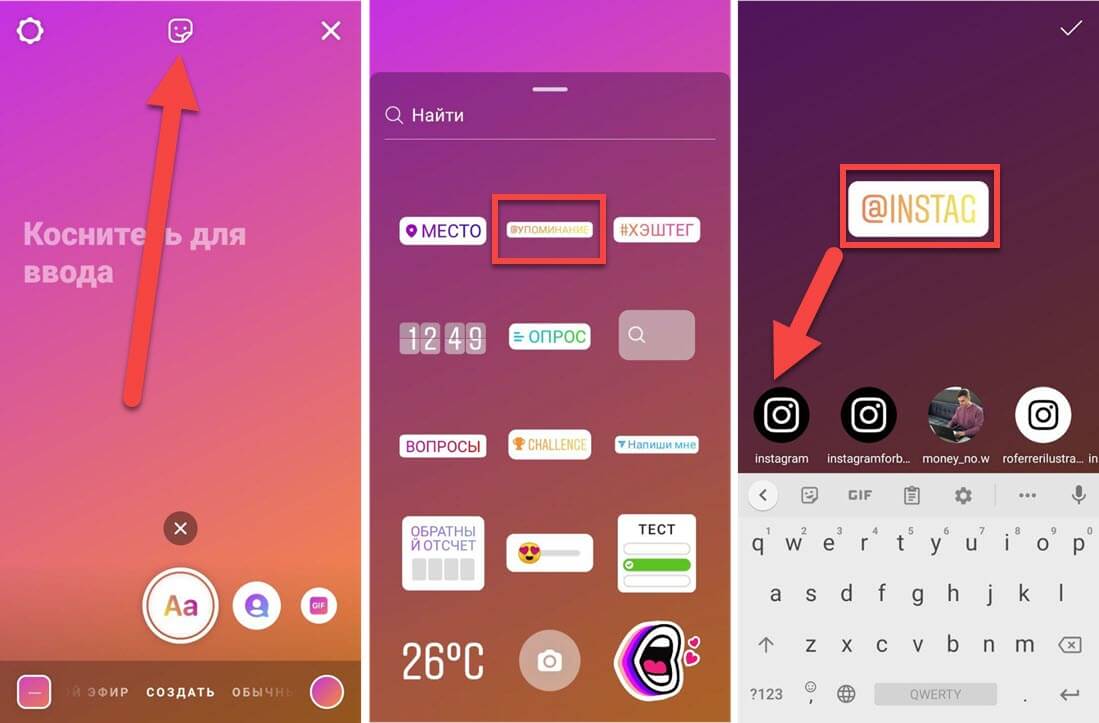 Другой человек, посмотревший вашу историю, сможет нажать по названию профиля и посетить страницу упомянутого пользователя. Но также отметить аккаунт можно и другим способом, с применением специального элемента. Стало интересно? Тогда вот пошаговая инструкция: