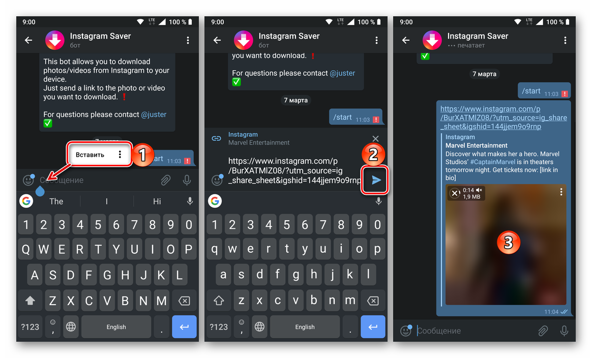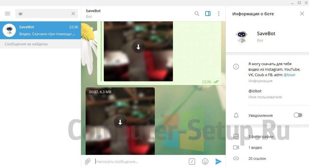 Есть простой способ загрузить видео из Instagram – при помощи Telegram. В этом мессенджере есть боты – автоматические программы, позволяющие делать разные вещи. Например, следить за новостями, узнавать остаток денег на счету и прочее. Нам же нужен бот под названием SaveBot.