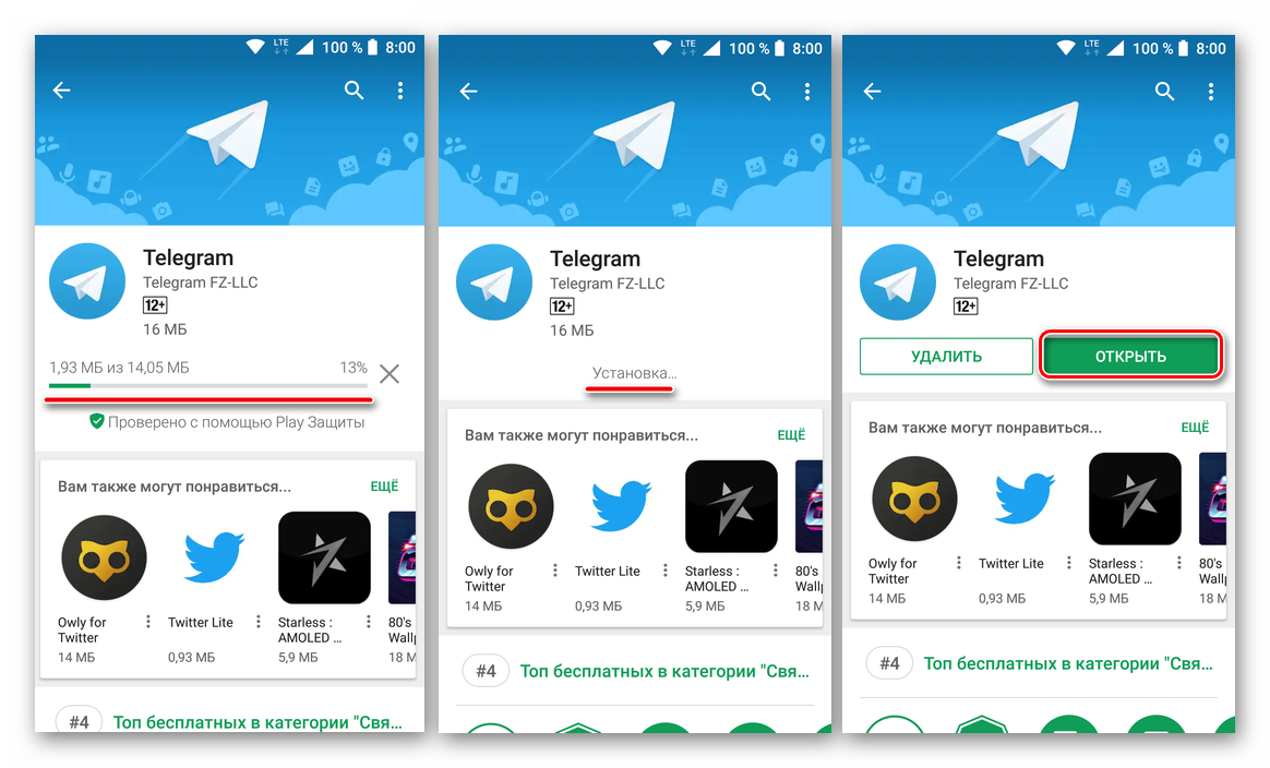Перейдя на страницу с описанием, коснуться опции – Установить.