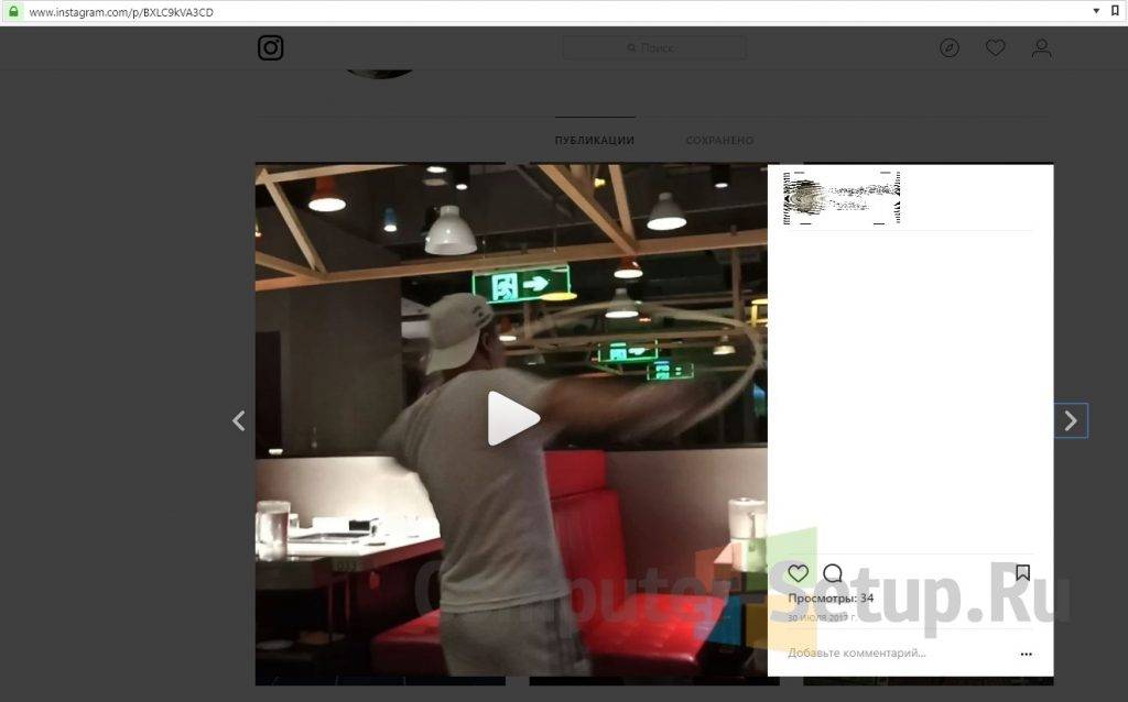 - В Инстаграм выбрать публикацию с видео, открыть ее отдельно, чтобы не отображались лишние элементы с ленты.