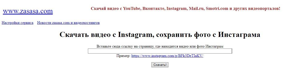 Используя Zasasa.com, можно скачивать контент не только с Instagram, но и с других развлекательных сайтов: Вконтакте, Yandex.ru, Mail.ru, Rutube и с прочих видео-порталов.