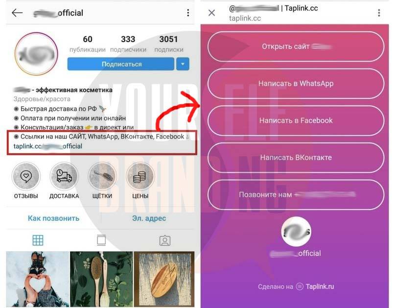 Обязательно понадобится активная ссылка, ведущая на сайт, лендинг, мессенджер для связи с клиентами.