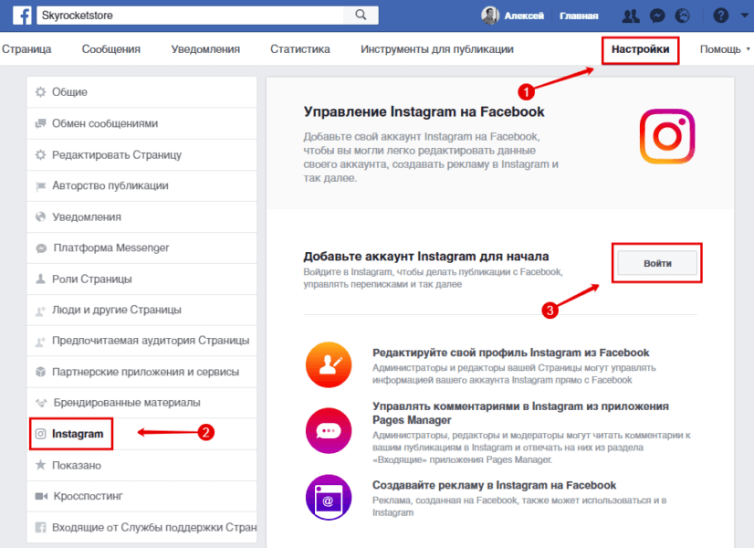 Настройка рекламной кампании происходит в Facebook, где у владельца страницы Instagram должен быть личный профиль.