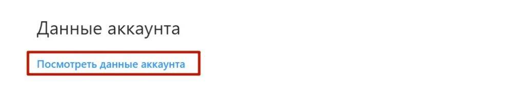 - Прокрутить страницу вниз, найти раздел «Данные аккаунта», кликнуть по надписи «Посмотреть данные аккаунта».