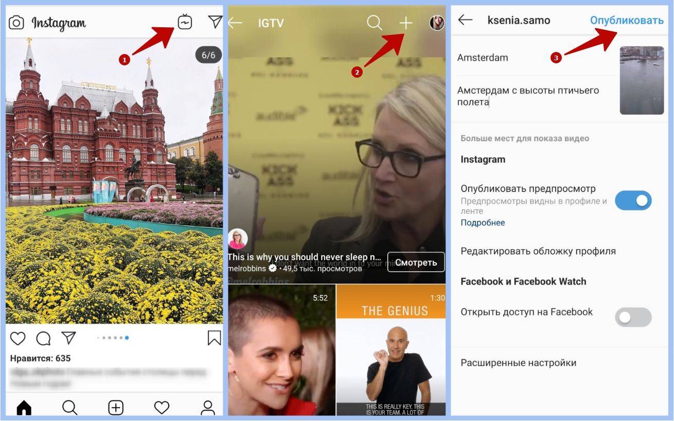 Чтобы загрузить видео в приложении Instagram, нажмите на значок IGTV в правом верхнем углу, затем кликните на плюсик и загрузите видео