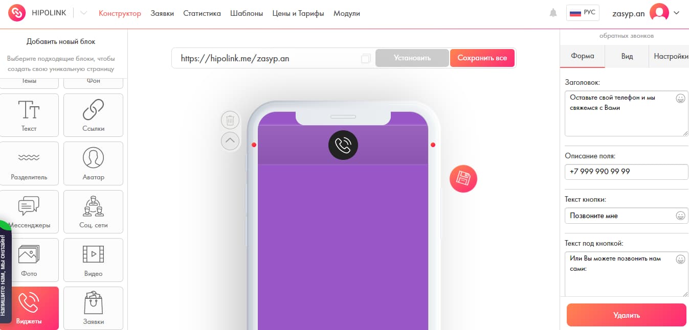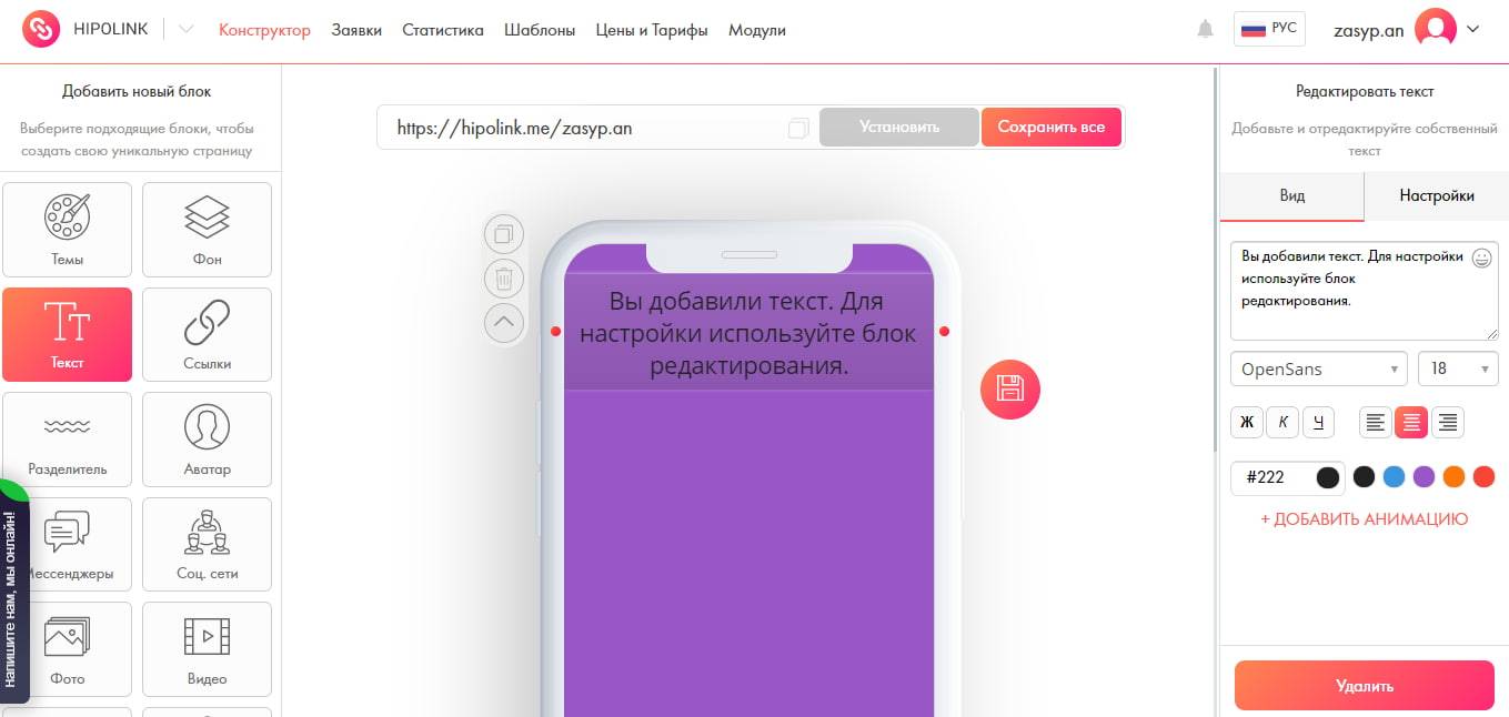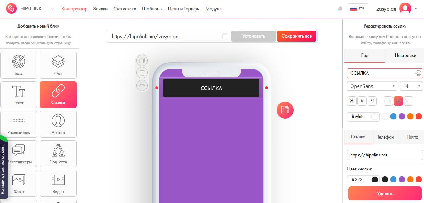 С помощью Hipolink.net вы просто и быстро создадите онлайн-визитку, которая сделает вашу страницу ещё привлекательнее, выстроит коммуникацию с клиентами и позволит отследить эффективность работы. Её просто настроить и самое главное, она сделает общение с клиентами удобнее и доступнее. Подобными сервисами пользуется большинство предпринимателей, поэтому советуем попробовать.