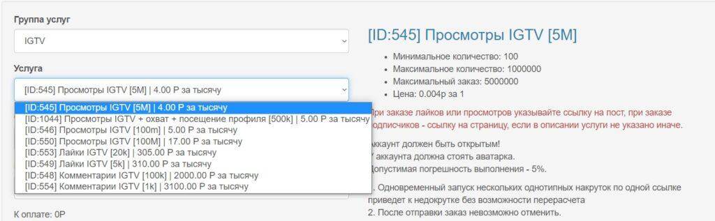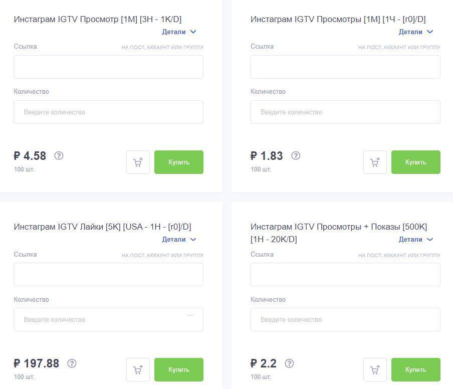 Этот сервис платный, однако цены довольно доступные – 0,99 руб. за 100 просмотров видео. Здесь можно заказать и просмотры историй – как самой новой, так и всех сторис аккаунта.