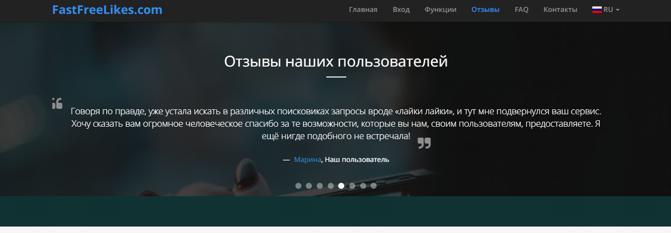 Итак, перейдем к небольшому обзору работы и накрутки сервиса Фаст Фри Лайк. А делать это лучше всего, разумеется, на практике. Открываем сайт и видим главную страницу. Уже здесь вы можете заранее ознакомиться со всеми контактами и отзывами пользователей.