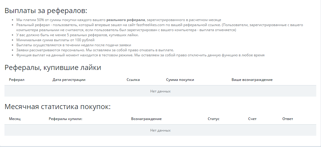- Выгодная партнерская программа. Можно неплохо заработать, привлекая новых исполнителей. Активная деятельность ваших рефералов будет приносить 15% ото всех заработанных ими лайков каждый день. Все что для этого нужно – регистрация пользователя по указанной вами ссылке, отыскать которую не составит труда в специальном разделе.