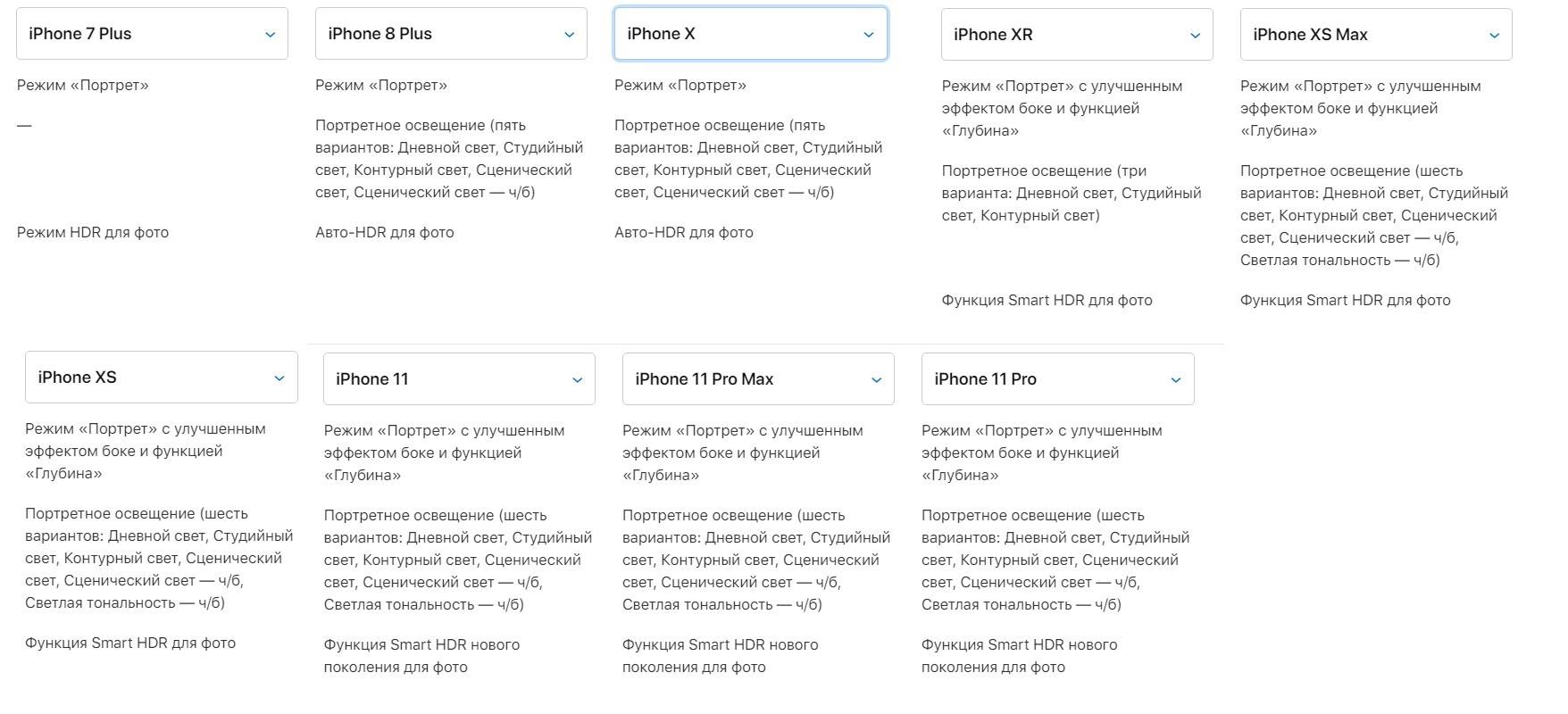 Модели телефона от Apple, которые тоже обладают портретной съемкой: