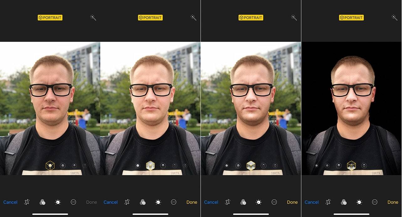 Чтобы улучшить освещение на фотографиях, в моделях телефона выше iPhone 8 Plus (включительно) появилась функция «Портретное освещение». В разных смартфонах для него разное количество фильтров (от трех до 6).