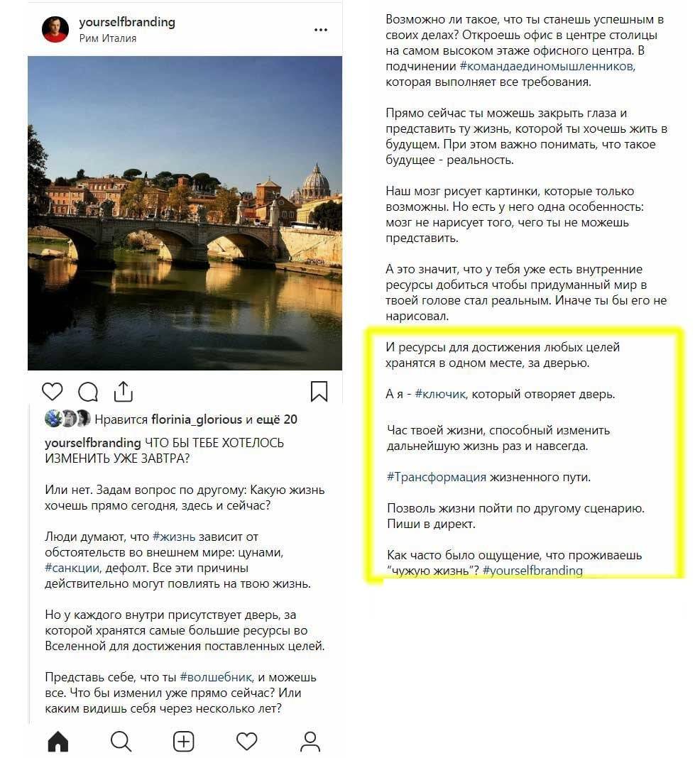 На этом примере хорошо видно, как писать продающие посты в Инстаграм.