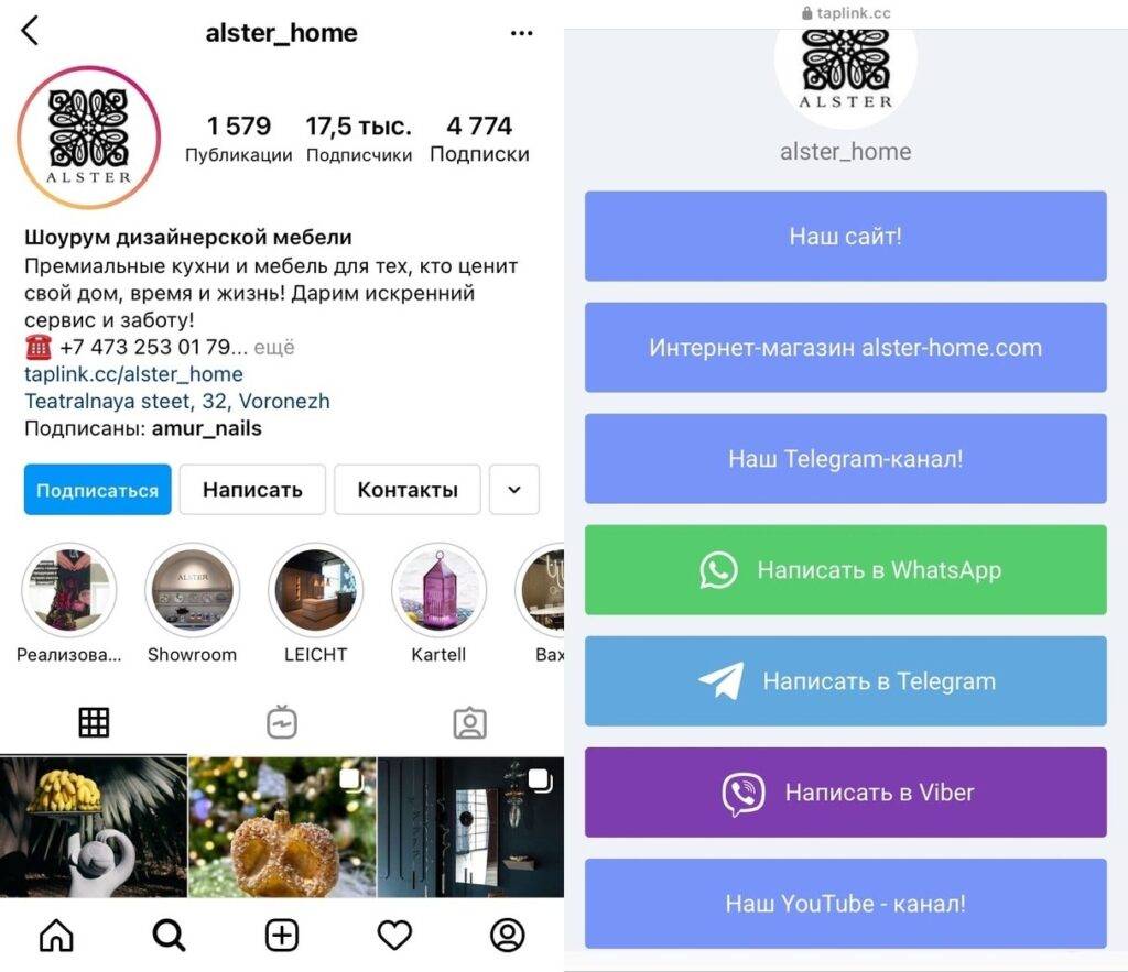 Чтобы сделать кнопки других мессенджеров в Instagram, можно разместить в профиле мультиссылку. Она создается при помощи специальных сервисов, таких как Taplink, Mssg и др. С их помощью легко настроить быстрый доступ ко всем способам связи. Можно сделать неограниченное число кнопок всех доступных мессенджеров и социальных сетей, чтобы пользователь мог выбрать для себя самый удобный вариант взаимодействия.