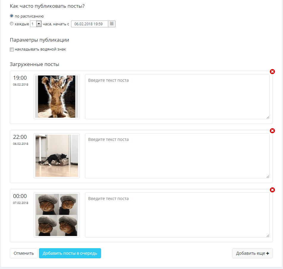 - Публиковать посты по расписанию или через равные промежутки времени.