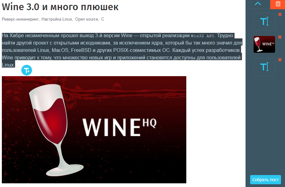 - Кликаем по кнопке в панели конструктора «Собрать пост».