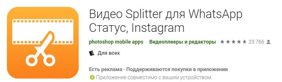 Сервис специально разработан для мобильных гаджетов на базе Андроид. Предназначен для нарезки видео на фрагменты необходимого размера, перед тем как залить его в историю. Программа довольно популярна среди пользователей стоит её установить, чтобы оценить ее возможности.