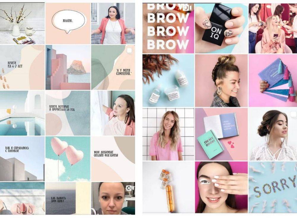 Таким же образом можно применять сетку, создавая вертикальный и диагональный стили оформления инстаграма.