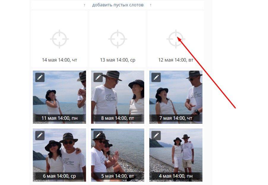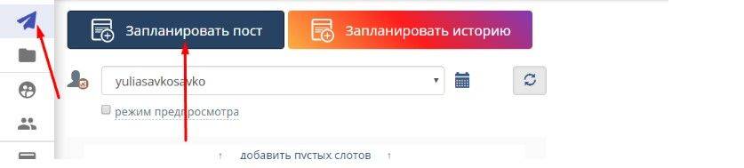 - Чтобы добавить новые посты, нужно кликнуть по свободному окошку в расписании.