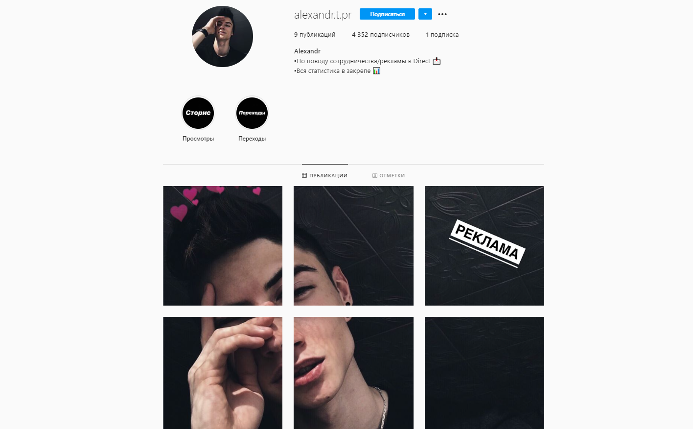 Аккаунт Александра Тянутова в Instagram, на котором он решает все вопросы по рекламе