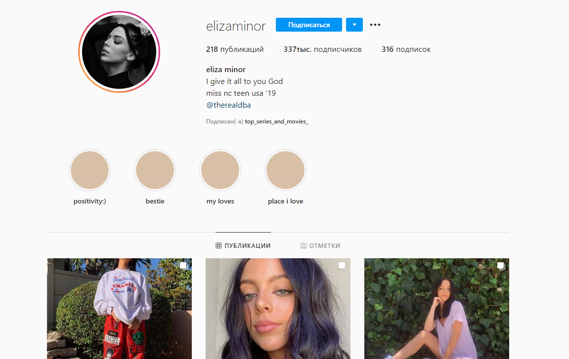 Социальные сети Элизы Минор: что постит в Инстаграм