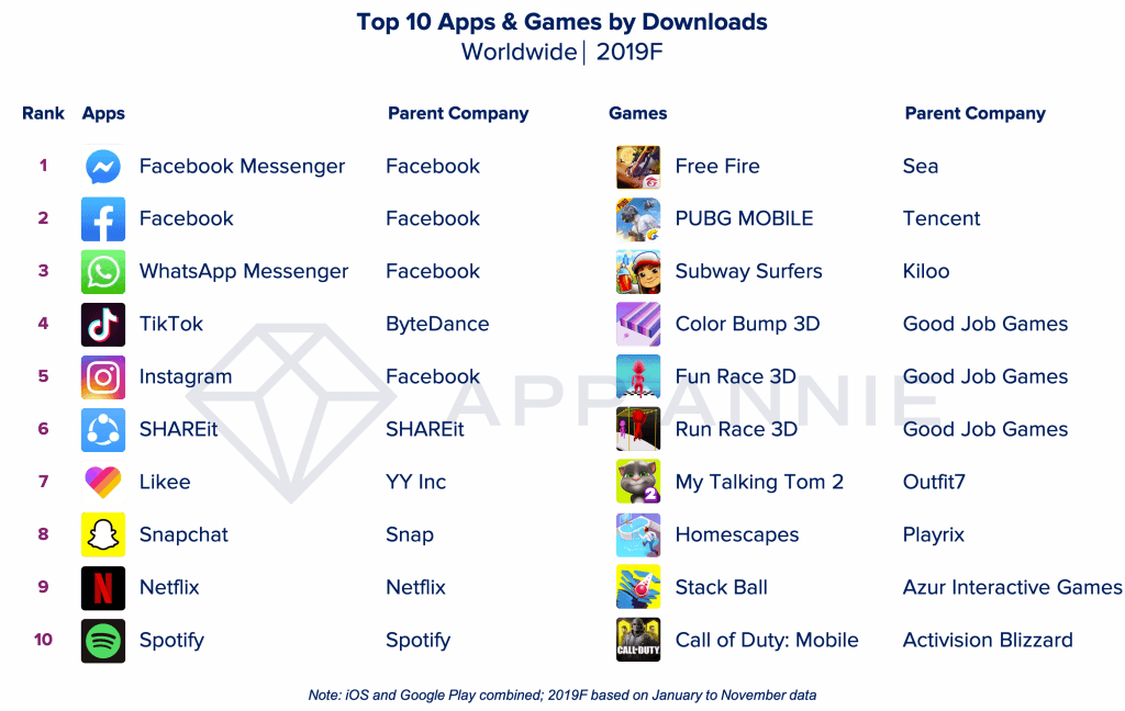 Приложение очень быстро обрело популярность. По итогам 2019 года оно занимает 4 место по количеству скачиваний, уступая лишь некоторым программам корпорации Facebook: