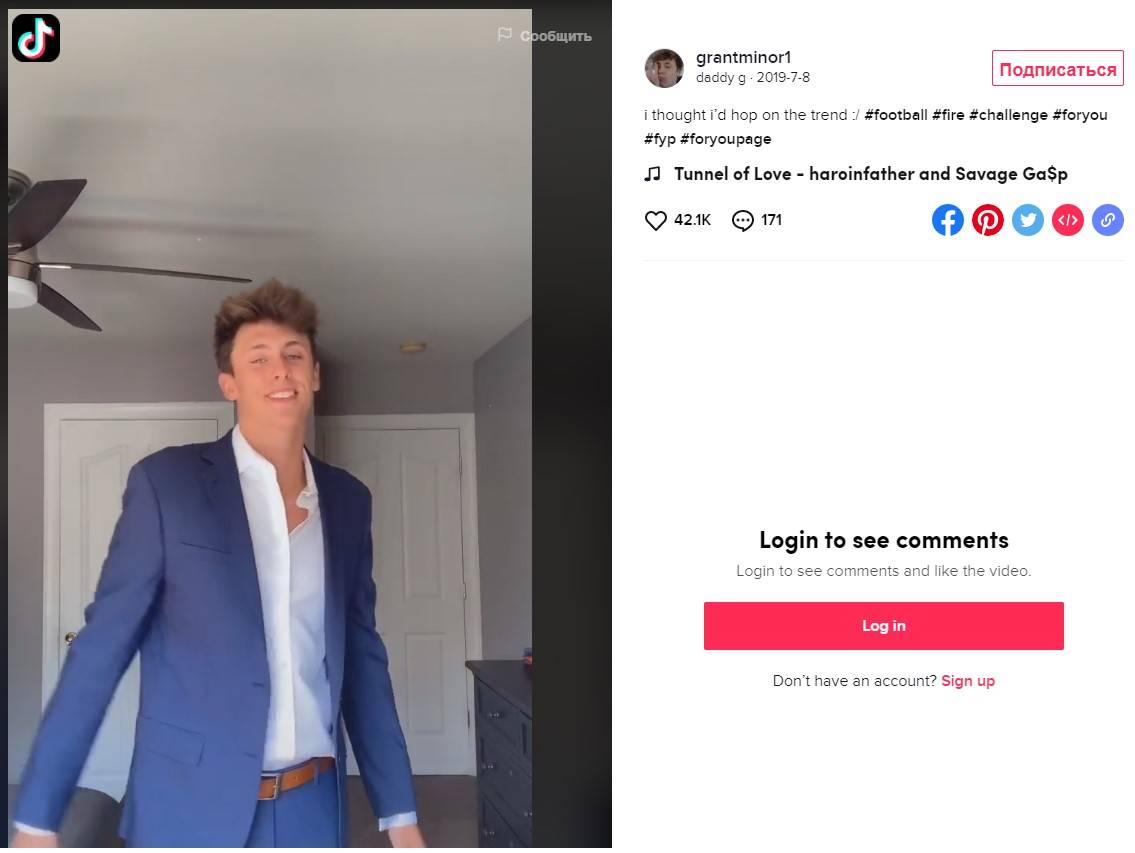 Самое первое видео Гранта набрало десятки тысяч лайков