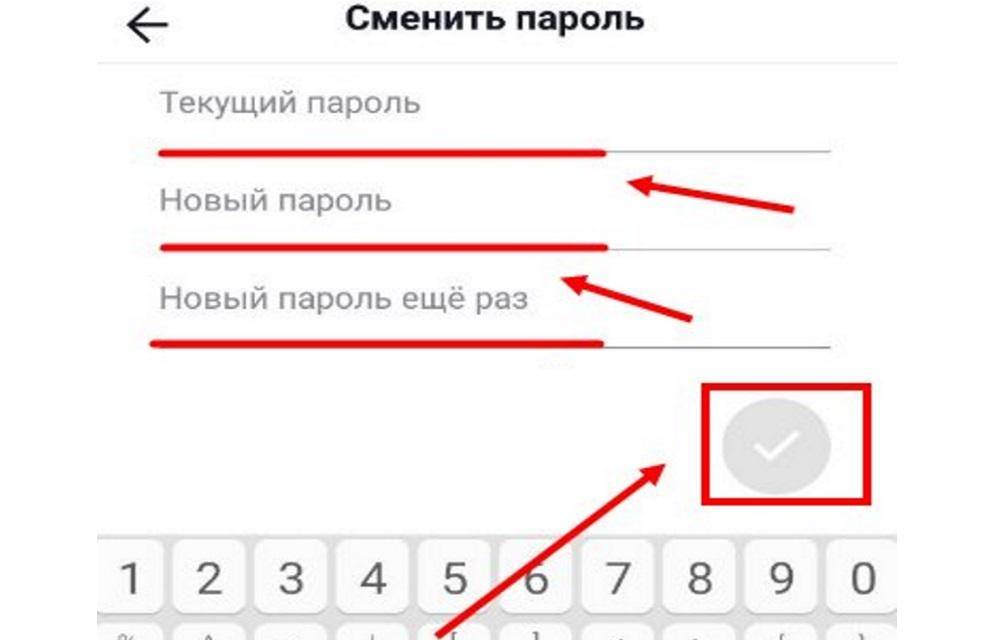 - Теперь пропишите старый пароль, затем новый и потом еще раз новый.
