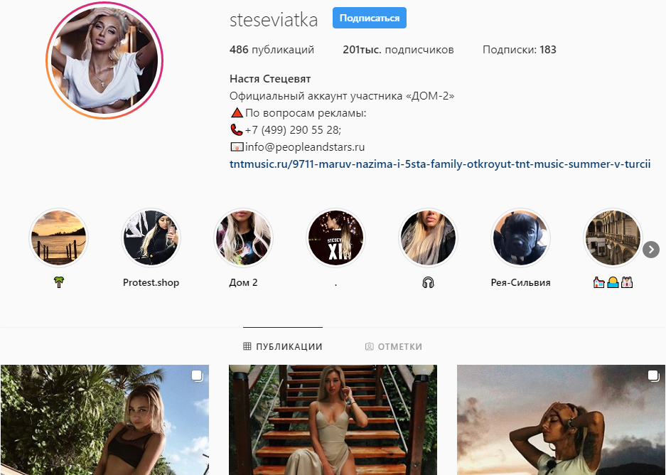 Анастасия является активным блоггером в инстаграм, на ее странице размещено более 500 интереснейших публикаций. Давно ведет и развивает свой аккаунт благодаря новым поклонникам. И не удивительно, ведь у девушки привлекательная внешность с модельной фигурой. Сейчас на ее страницу подписано более 200 тысяч фолловеров.