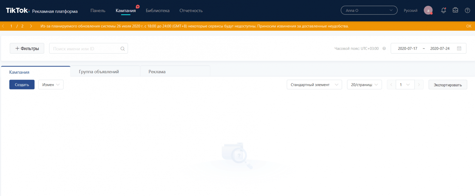 Для настройки и запуска таргетированной рекламы в Тик-Ток используется сервис TikTok Ads. Русский язык в настоящий момент не поддерживается, но это, вероятно, лишь вопрос времени.