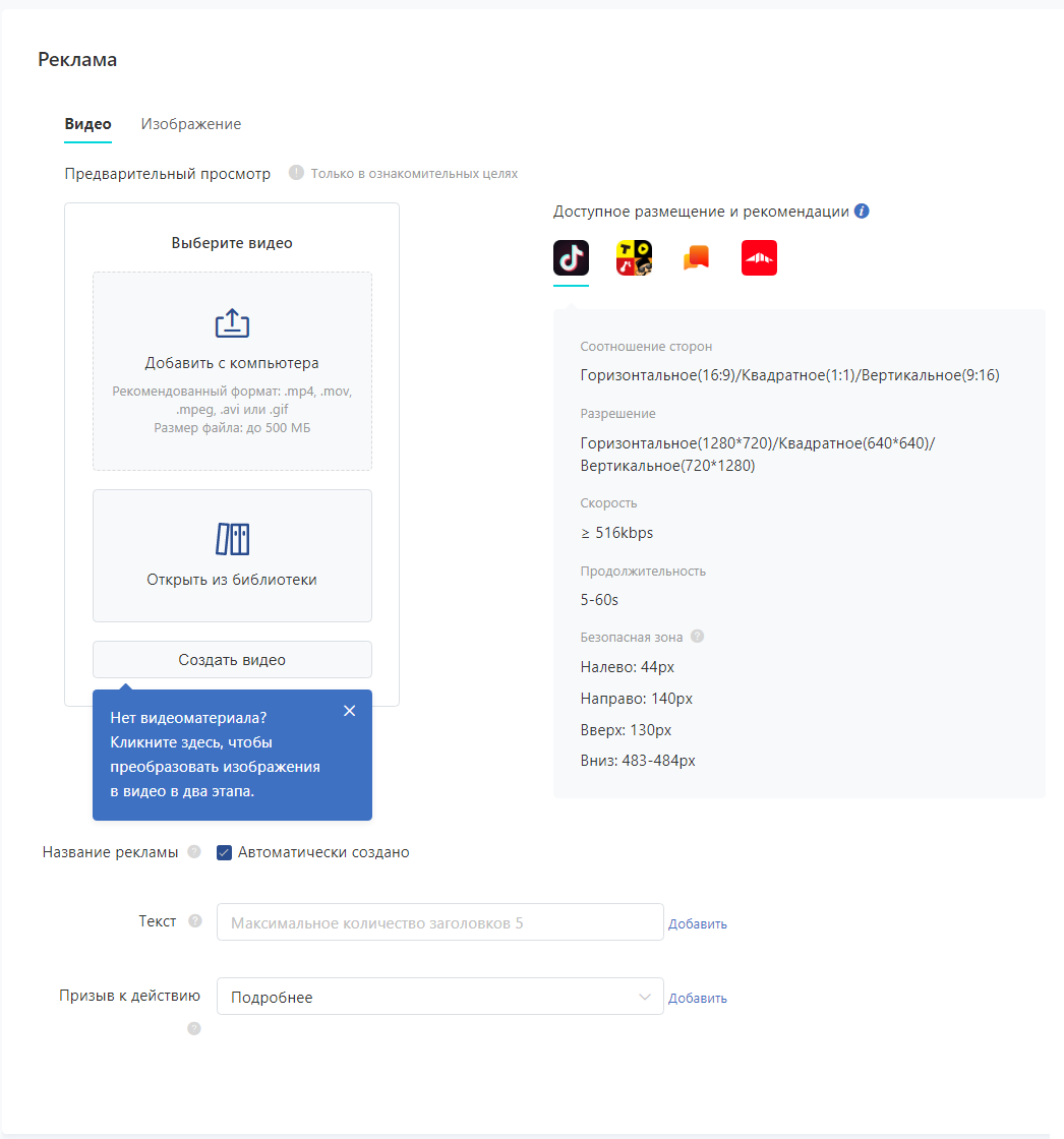 - Описание рекламы размещается внизу экрана, поэтому главное креативное послание следует поместить в центре видео или картинки, чтобы оно не смешивалось с текстом внизу.