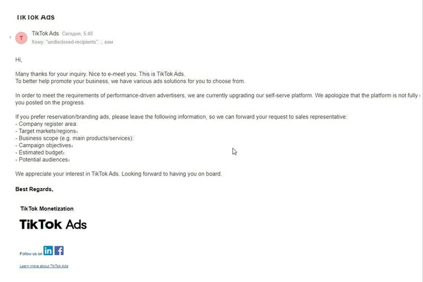 2. Есть ли у вас достаточный бюджет для рекламы в TikTok?