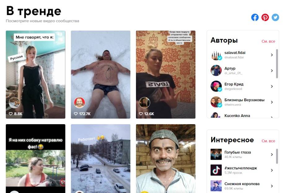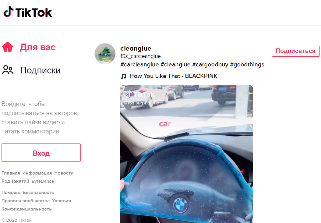 Ещё до авторизации нам открываются трендовые видео. Вы можете листать их, смеяться или ужасаться с того, что нравится аудитории сервиса. Минусы: рекомендации не подстраиваются под вас, а также вы не видите комментарии пользователей. Зато вы легко, нажатием на одну кнопку, можете скопировать ссылку на клип.