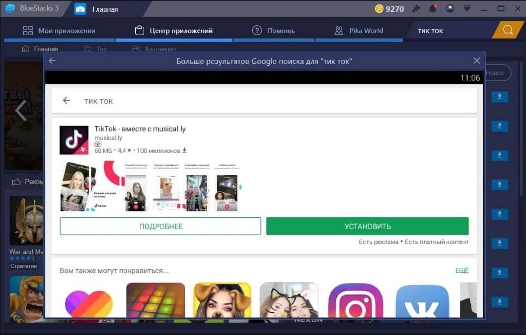 Пользователю нужно подключить свой аккаунт от Google и скачать Тик Ток на эмулятор. Недостаток такой версии в том, что не все ПК способы выдержать нагрузки. Снимать клипы через компьютер можно в том случае, если объем свободной оперативной памяти от 6 Гб, а процессор минимум Intel Core i3 или схожий от AMD.