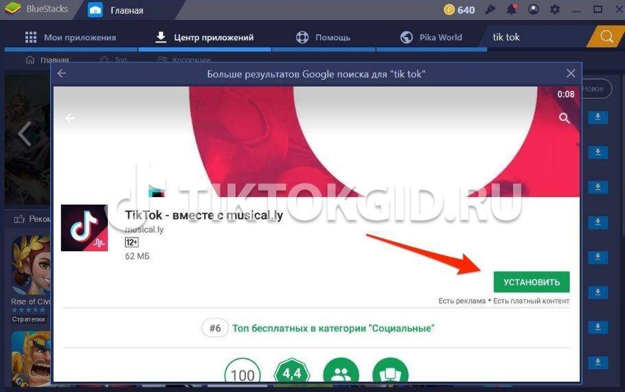 Чтобы войти в Тик Ток через компьютер, необходимо посетить магазин приложений через уже запущенную программу, и авторизоваться в учетной записи гугл. Далее, выполняется обычный поиск нужного приложения с помощью отведенной строки и все, что остается сделать после успешного поиска – скачать софт аналогичным образом.