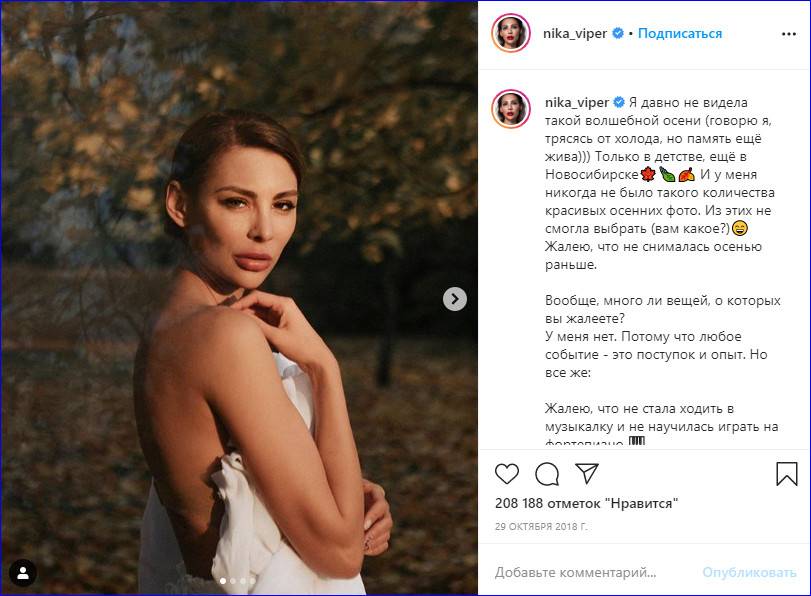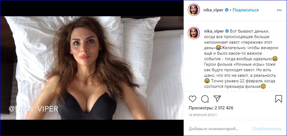 Итак, свой Инстаграм Ника завела еще в 2012 году. Сначала Вайпер планировала постить туда только фотографии со съемок и модельные фотосессии. В 2012 году молодая и неопытная блогерша Ника еще не могла понять бесперспективности такого пути. Симпатичных девушек в России крайне много, и популярности на всех попросту не хватит.