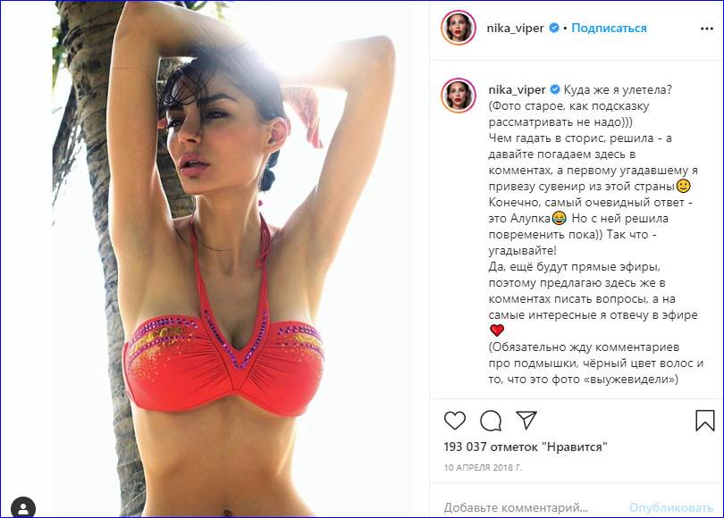 В общем, о натуральной красоте заикаться не стоит. Ника Вайпер попросту никак не комментирует споры подписчиков о своей внешности.